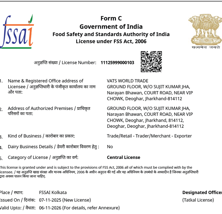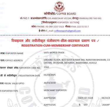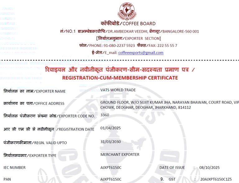 Apart from country specific certifications, every shipment would include a phytosanitary certificate and a certificate of origin.